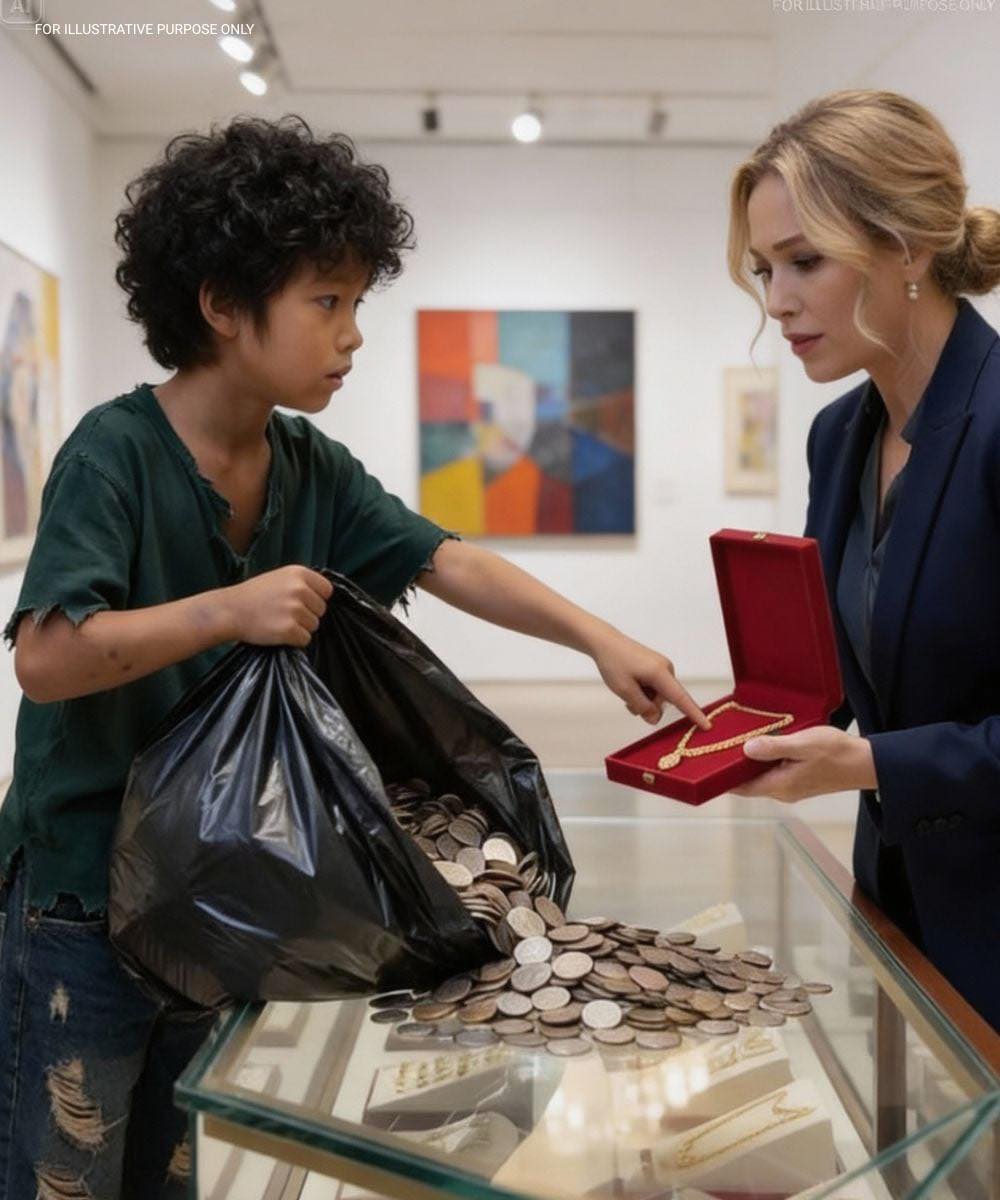 Mały, obdarty chłopiec w milczeniu wysypywał tysiące monet na szklaną ladę ekskluzywnego sklepu jubilerskiego.